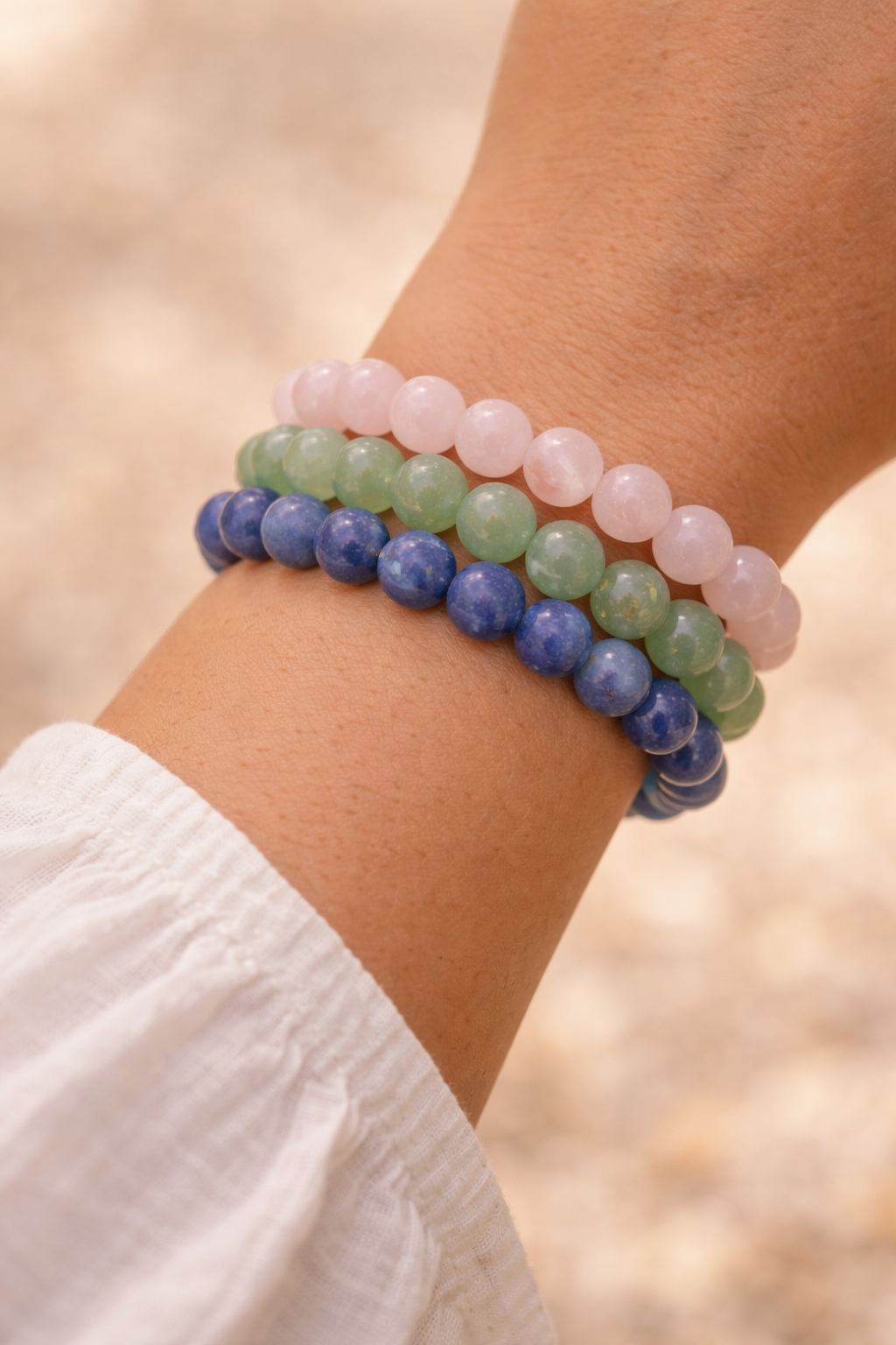 Des bracelets en pierres naturelles pour porter un peu de douceur au quotidien. Chaque pierre, choisie pour sa beauté et ses vertus.
