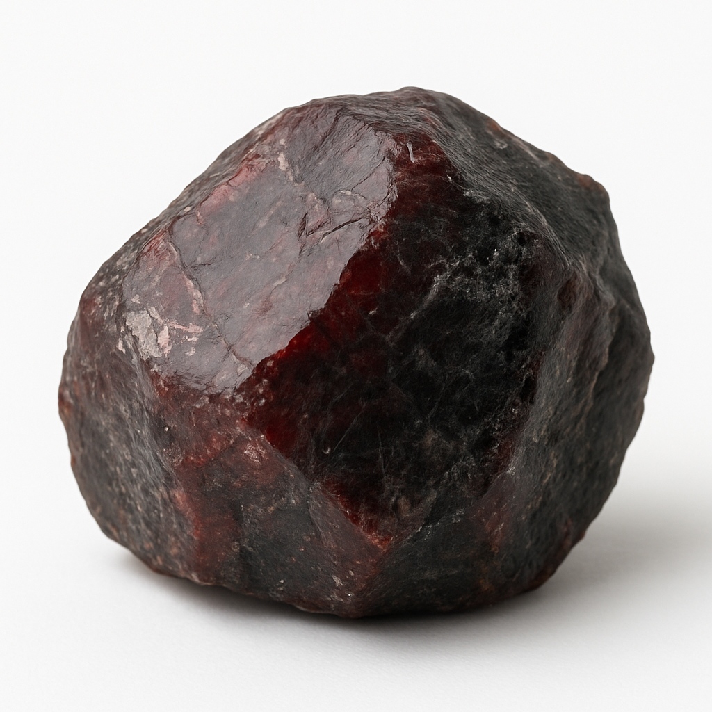 🌍 Pierre naturelle du groupe des grenats, le plus souvent en variétés almandin et pyrope, à la teinte rouge profond tirant parfois sur le bordeaux.
