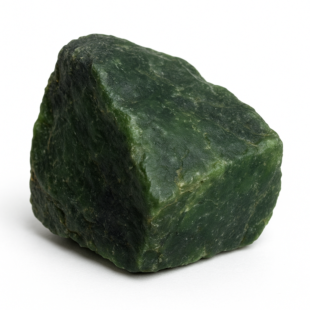 🌍 Variété de jade composée d’amphiboles calciques-magnésiennes, réputée pour sa grande ténacité et sa teinte verte profonde.
