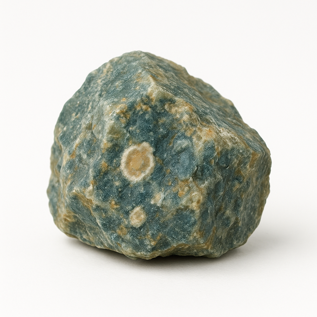 🌍 Jaspe orbiculaire aux tons verts, crème, rosés et ocres, célèbre pour ses motifs circulaires ; gisements côtiers à Madagascar.
